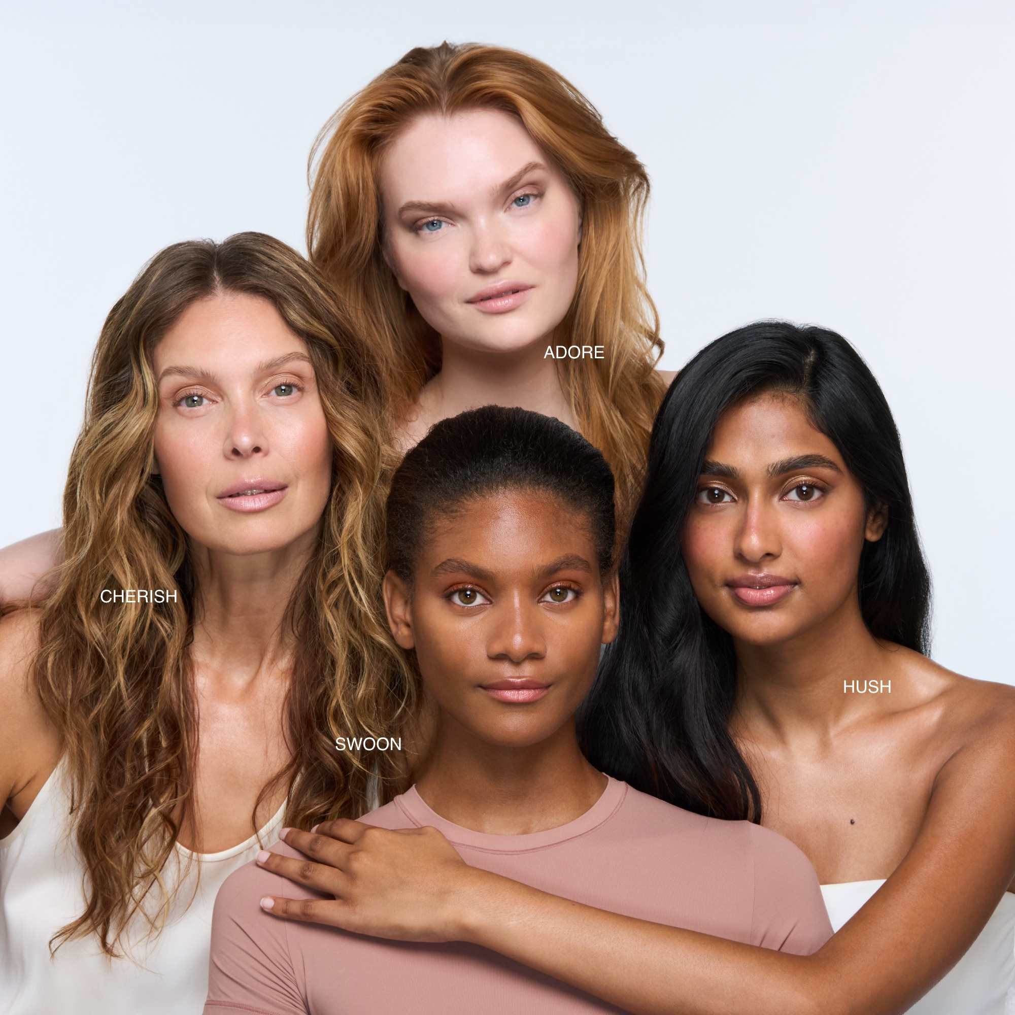 Hush: Un tono melocotón rojizo diseñado para pieles de medias a oscuras.